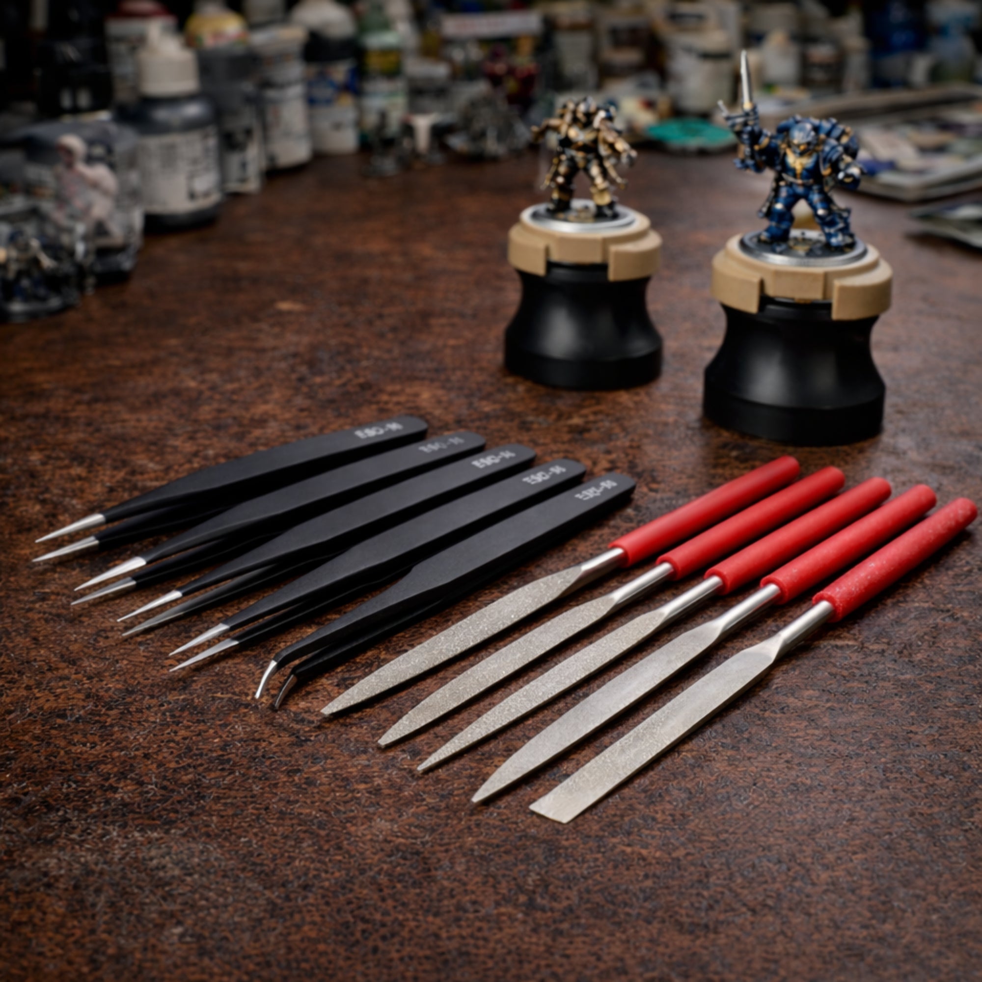 Zestaw pilników diamentowych przeznaczonych do precyzyjnej obróbki elementów modelarskich, figurek oraz drobnych detali. Sprawdzają się idealnie przy usuwaniu nadlewek, wygładzaniu powierzchni oraz korygowaniu kształtów przed i po malowaniu.
